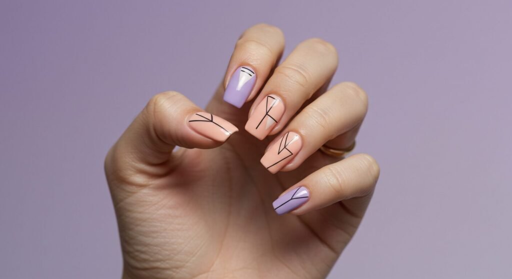 Line art nails create striking visuals using thin stripes, intersecting patterns, and negative space techniques. Abstract geometric designs combine shapes, angles, and colors in unexpected ways that challenge traditional nail art conventions.